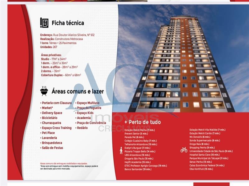 Studio para locação na Penha, entrega prevista para março de 2026, com 17m² de área útil muito bem distribuídos, ambiente moderno e funcional, ideal para solteiros, estudantes ou profissionais que buscam praticidade, imóvel novo com acabamento moderno, espaço integrado e boa iluminação natural, localizado em região com fácil acesso a comércios e transporte público.
