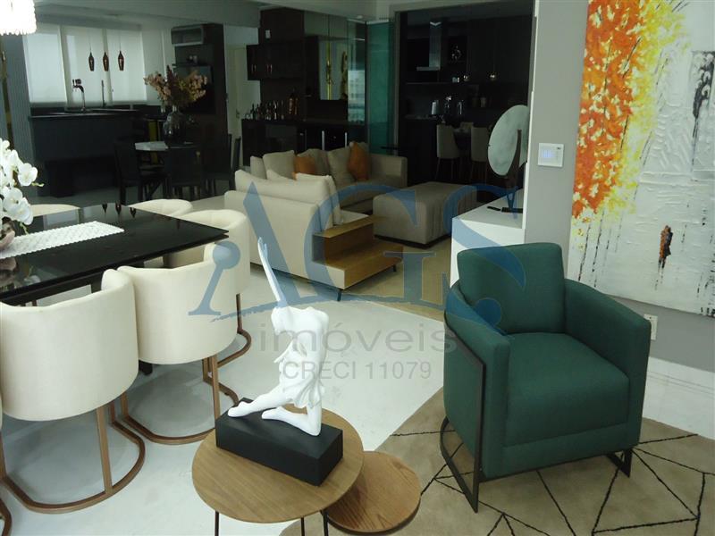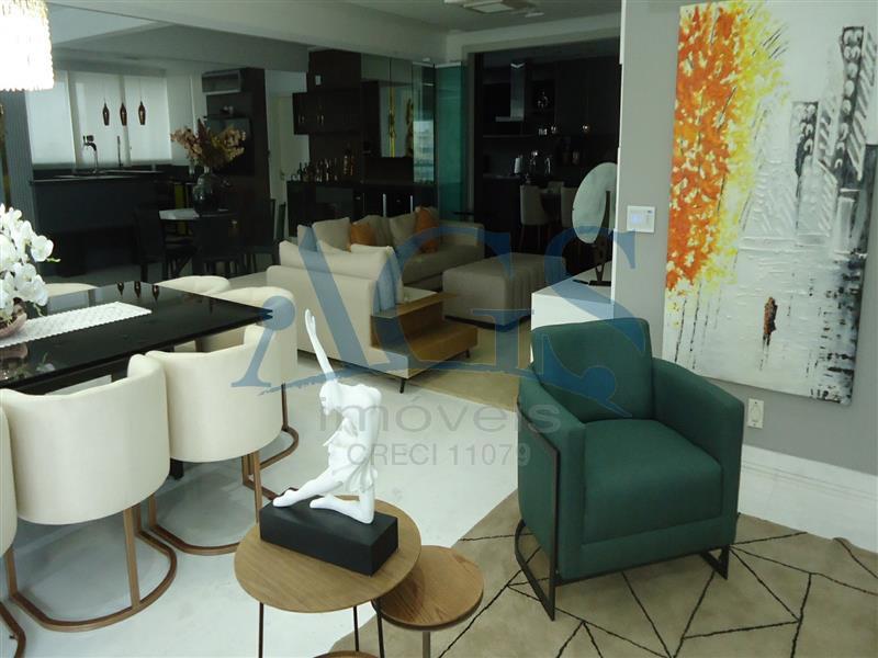 Apartamento de alto padrão totalmente mobiliado, climatizado em todas as dependências, com 425 m² de área útil, 5 dormitórios sendo 5 suítes, 6 banheiros, 7 vagas de garagem e sala gourmet integrada, com acabamento sofisticado, projeto moderno e mobiliário de alto padrão, oferecendo conforto, amplitude e exclusividade em cada ambiente.